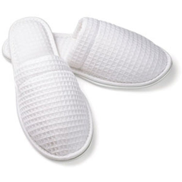 Luxury White Waffle Slippers for Spa & Salon Clients. Your clients deserve to step into comfort and elegance, and these Ladies Closed Toe Waffle Slippers in White by Boca Terry offer just that. Designed to elevate the spa experience, these slippers combine luxury with practicality, ensuring your clients feel pampered from head to toe. Crafted with the discerning spa and salon professional in mind, they provide the perfect blend of sophistication and durability for use in high-end establishments.