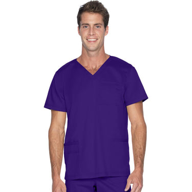 Landau Proflex Men's 4-Pocket V-Neck Top - GRAPE / Sizes S - 5XL. Landau's ProFlex crossover V-neck scrub shirt for men is stylish, comfortable, and functional. Back yoke detailing offers a flattering shape, side vents offer extra ease of movement, and four pockets provide plenty of storage space for your medical accessories. Landau's modern tailored fit is tapered to enhance your shape without constricting your movement, and Landau's 2-way comfort stretch helps give you added flexibility required of your work wear. Landau is known for producing scrubs that work as hard as you do! 73% Polyester/25% Rayon/2% Spandex