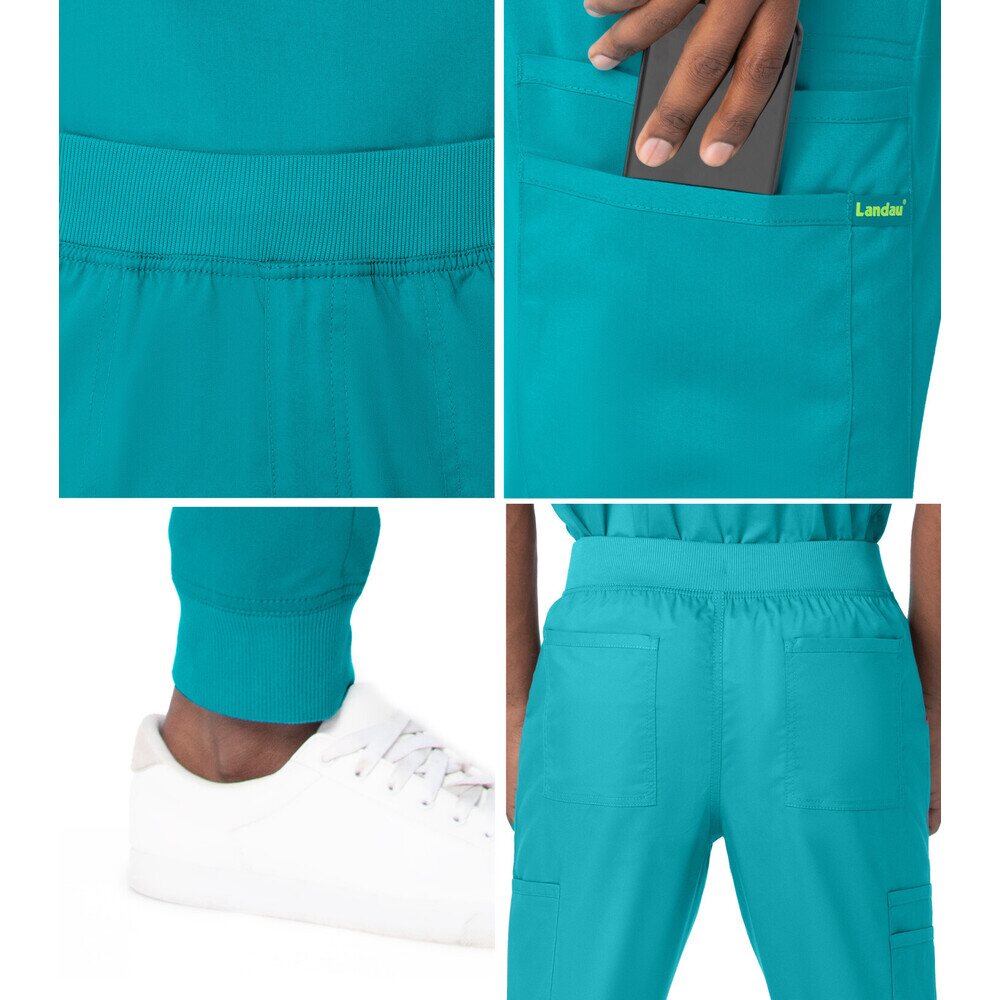 Landau Proflex Men's Banded-Bottom Jogger Pants with Elastic Waistband + 7 Pockets - GALAXY / Sizes S - 3XL. These Landau ProFlex mid-rise jogger pants for men feature an elastic waist with drawstring that ensures a snug, custom fit, and seven pockets provide more than enough storage for all of your essentials. Landau's modern tailored fit is tapered to enhance your shape without constricting your movement, and Landau's 2-way comfort stretch helps give you added flexibility required of your work wear. Landau isknown for producing apparel that work as hard as you do!
