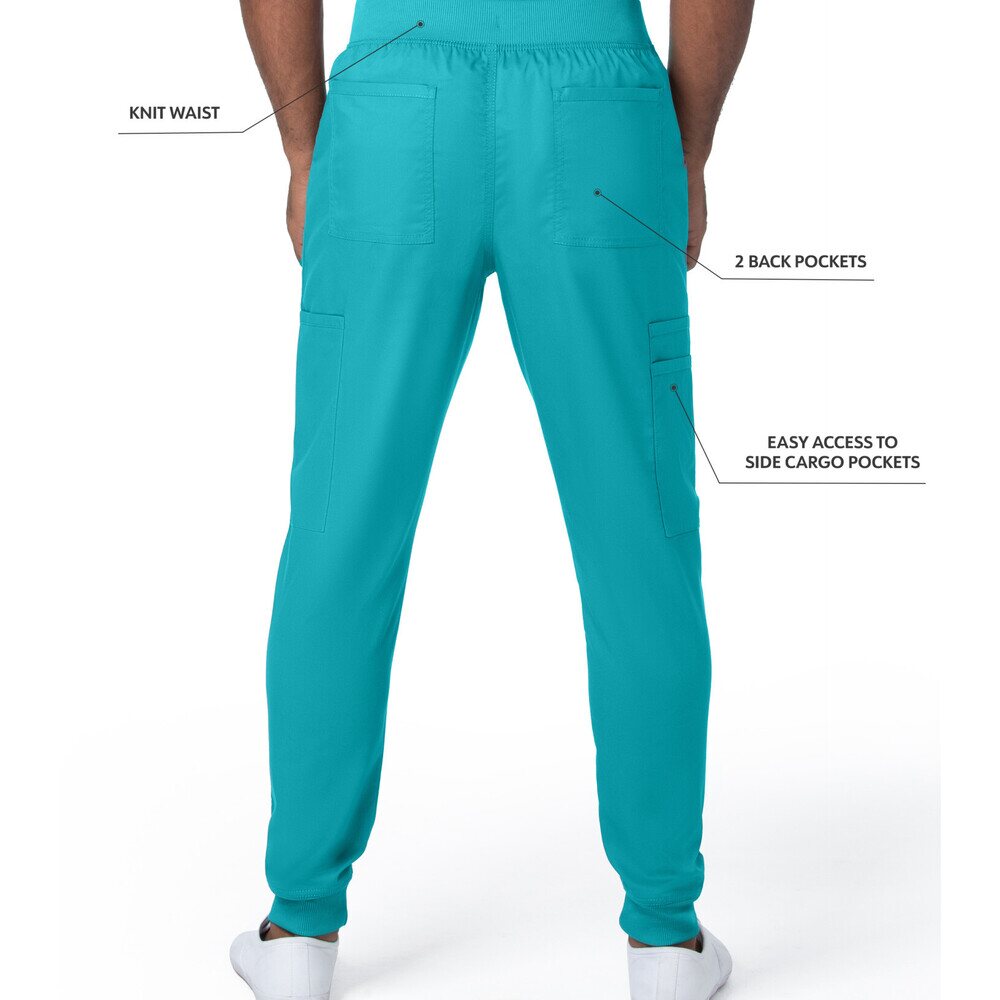 Landau Proflex Men's Banded-Bottom Jogger Pants with Elastic Waistband + 7 Pockets - TEAL / Sizes S - 3XL. These Landau ProFlex mid-rise jogger pants for men feature an elastic waist with drawstring that ensures a snug, custom fit, and seven pockets provide more than enough storage for all of your essentials. Landau's modern tailored fit is tapered to enhance your shape without constricting your movement, and Landau's 2-way comfort stretch helps give you added flexibility required of your work wear. Landau isknown for producing apparel that work as hard as you do!