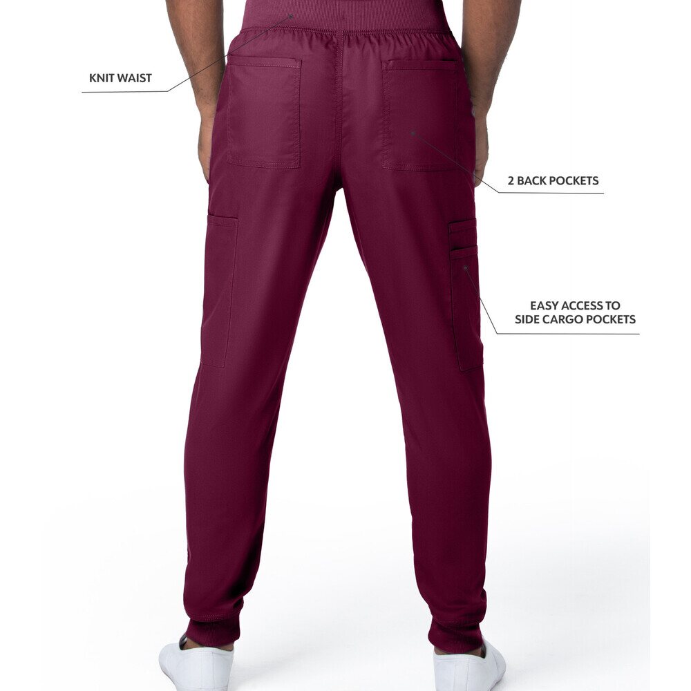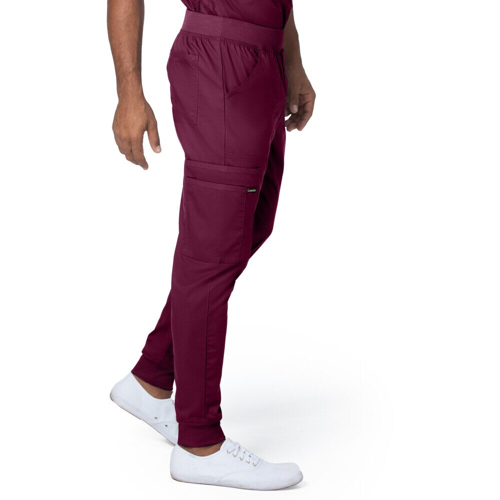 Landau Proflex Men's Banded-Bottom Jogger Pants with Elastic Waistband + 7 Pockets - WINE / Sizes S - 3XL. These Landau ProFlex mid-rise jogger pants for men feature an elastic waist with drawstring that ensures a snug, custom fit, and seven pockets provide more than enough storage for all of your essentials. Landau's modern tailored fit is tapered to enhance your shape without constricting your movement, and Landau's 2-way comfort stretch helps give you added flexibility required of your work wear. Landau isknown for producing apparel that work as hard as you do!