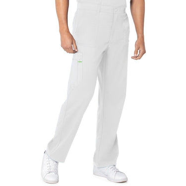 Landau Proflex Men's Straight-Leg Cargo Pants - WHITE / Sizes S - 5XL. These Landau ProFlex cargo pants come fully loaded with an elastic-back waist and flat front with a zipper and snap closure as well as belt loops and an internal drawstring for an adjustable fit. Six pockets offer plenty of storage space for all your medical accessories. Landau's men's modern tailored fit is tapered to enhance your shape without constricting your movement, and Landau's 2-way comfort stretch helps give you added flexibility required of your work wear. Landau is known for producing apparel that work as hard as you do! 73% Polyester/25% Rayon/2% Spandex.