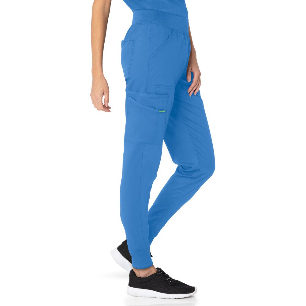 Landau Proflex Women's Banded-Bottom Jogger Pants with Elastic Waistband + 7 Pockets - CEIL / Sizes XS - 5XL. These Landau ProFlex mid-rise jogger pants for women feature an elastic waist with an internal drawstring ensuring a snug, custom fit, and seven pockets provide more than enough storage for all your essentials. Landau modern tailored fit is tapered to enhance your shape without constricting your movement, and Landau's modern 2-way comfort stretch helps give you added flexibility required of your work wear. Landau is known for producing apparel that work as hard as you do!