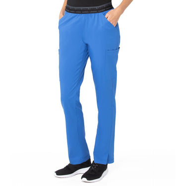 Landau Proflex Women's Tapered-Leg Cargo Pants - ROYAL / Sizes XXS - 5XL. Landau's mid-rise cargo scrub pants for women offer an elastic waist with an internal drawstring, a stylish tapered leg, and side vents for all-day comfort. Five total pockets including two angled hip pockets, two cargo pockets, and one back pocket provide ample storage for all your essentials. Landau's modern tailored fit is tapered to enhance your shape without constricting your movement, and our 2-way comfort stretch helps give you added flexibility required of your work wear. Landau is known for producing apparel that work as hard as you do!