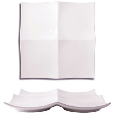 Large 4-Section Square Origami Plate. Elevate your spa or salons presentation with the Large 4-Section Square Origami Platean artful fusion of function and elegance. Designed with clean, modern lines and a unique folded aesthetic, this high-quality porcelain plate is perfect for elevating your service experience. Whether you're offering clients a luxurious spa treatment, an organized way to present skincare products, or a sophisticated refreshment tray, this piece transforms any setting into a high-end, curated space.