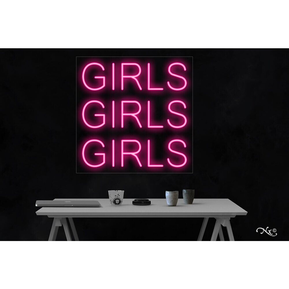 LED Flex Neon Sign - Girls Girls Girls / Size: 24"W x 24"H x 1"D / 12 Font Color Options: Dark Blue, Gold, Green, Hot Pink, Light Blue, Light Pink, Orange, Purple, Red, Warm White, White and Yellow
