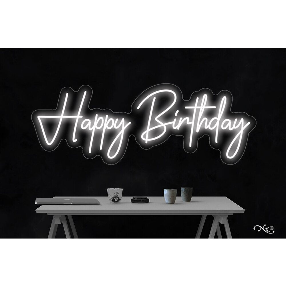 LED Flex Neon Sign - Happy Birthday / Size: 36"W x 13"H x 1"D / 12 Font Color Options: Dark Blue, Gold, Green, Hot Pink, Light Blue, Light Pink, Orange, Purple, Red, Warm White, White and Yellow