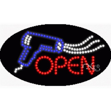 LED Sign - Barber Open / 15"H x 27"W x 1"D. High impact, eye Catching, real LED sign. With a characteristic brightness that can attract customers like nothing else, virtually burning your identity into the minds of potential and future customers. LED signs can left on 24 hours a day, 7 days a week, 365 days a year. This LED sign will make a great impact on your customers. Securely packed in foam. Shipped & fully insured. 1 year Warranty.
