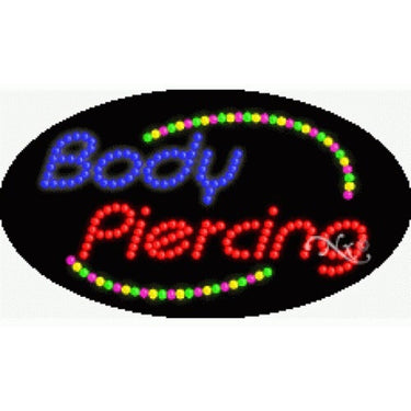 LED Sign - Body Piercing / 15"H x 27"W x 1"D. High impact, eye Catching, real LED sign. With a characteristic brightness that can attract customers like nothing else, virtually burning your identity into the minds of potential and future customers. LED signs can left on 24 hours a day, 7 days a week, 365 days a year. This LED sign will make a great impact on your customers. Securely packed in foam. Shipped & fully insured. 1 year Warranty.