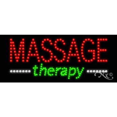 LED Sign - Massage Therapy / 11"H x 27"W x 1"D. High impact, eye Catching, real LED sign. With a characteristic brightness that can attract customers like nothing else, virtually burning your identity into the minds of potential and future customers. LED signs can left on 24 hours a day, 7 days a week, 365 days a year. This LED sign will make a great impact on your customers. Securely packed in foam. Shipped & fully insured. 1 year Warranty.