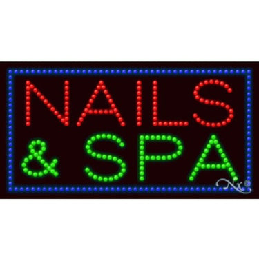 LED Sign - Nails & Spa / 17"H x 32"W x 1"D by ArtSigns.