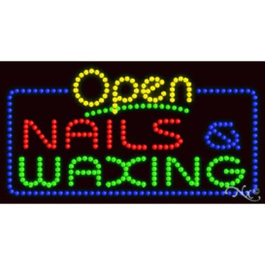 LED Sign - Nails & Waxing Open / 17"H x 32"W x 1"D by ArtSigns.