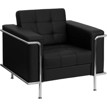 Les Series Reception Chair / Black by BIGA. This attractive black leather reception chair will complete your upscale reception area. The design of this chair allows it to adapt in a multitude of environments with its tufted cushions and visible accent stainless steel frame.