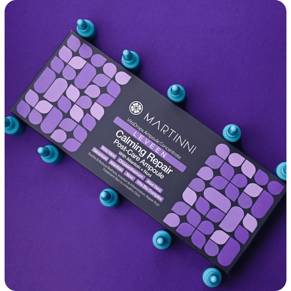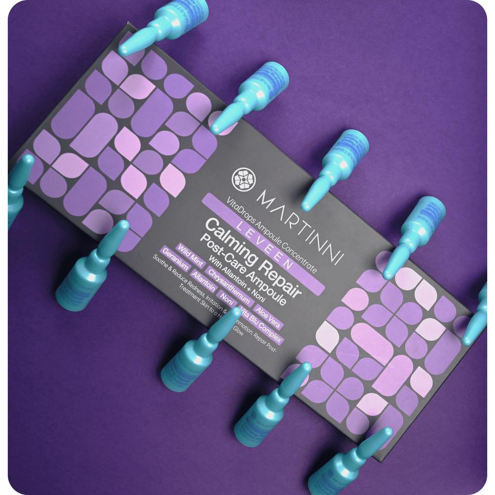 LEVEEN Calming Repair Post-Care Ampoules / Each Ampoule = 0.17 oz. - 5 mL. / 10 Ampoules Per Box X 2 = 20 Ampoules Total by Martinni