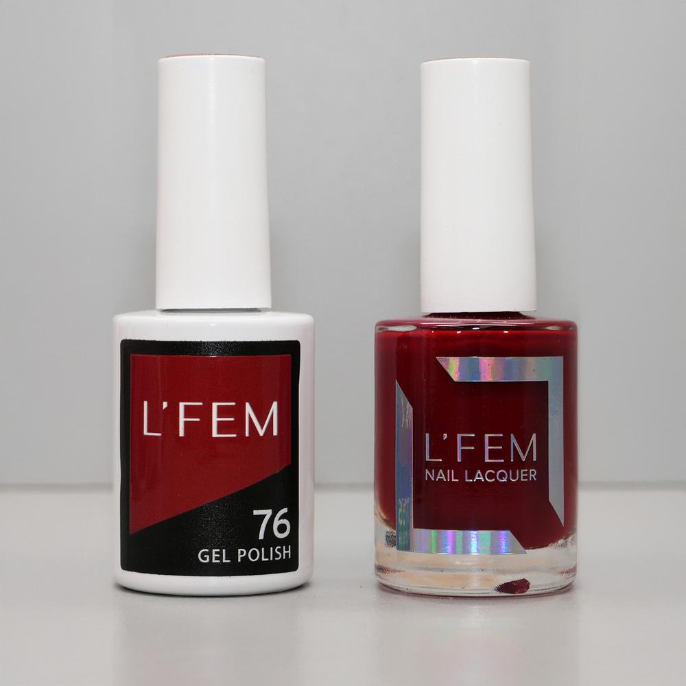 - Exact color matching: L'FEM Gel Polish and Lacquer are designed to match perfectly, providing a cohesive look for your clients from gel to lacquer.