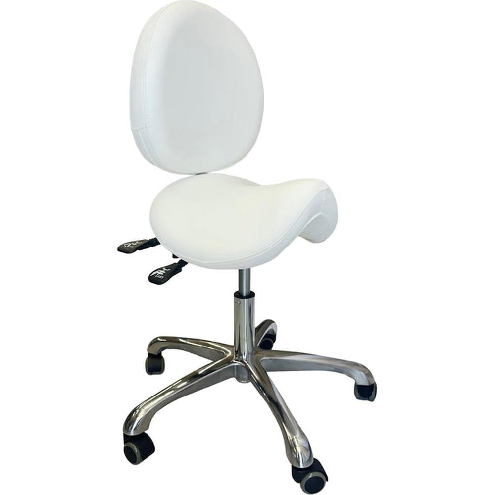 Ideal for high-traffic treatment rooms where technicians need to move freely while maintaining alignment and control, the Liana Saddle Stool supports spinal health without sacrificing style. The two-lever adjustment system allows you to fine-tune both seat height and tilt to suit your workstation needs, while the integrated backrest provides added lumbar support. Its white polyurethane upholstery offers a crisp, professional appearance and wipes clean in seconds—perfect for fast-paced environments where hygiene is non-negotiable.