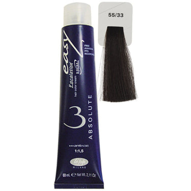 Lisap Easy Absolute 3 Ammonia Free Permanent Color - 55/33 - 2.11 oz. - 50 mL. This hair-friendly colour has many wonderful properties that puts it a step above all the rest when it comes to high quality professional colouring. Easy absolute 3 is ammonia free, PPD free, resorcinol free and is specially designed with fragile and sensitive hair in mind. Every tube of Easy Absolute isenriched with argan oil which keeps hair nourished, healthy and looking its best.