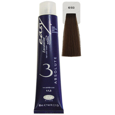 Lisap Easy Absolute 3 Ammonia Free Permanent Color - 6/03 - 2.11 oz. - 50 mL. This hair-friendly colour has many wonderful properties that puts it a step above all the rest when it comes to high quality professional colouring. Easy absolute 3 is ammonia free, PPD free, resorcinol free and is specially designed with fragile and sensitive hair in mind. Every tube of Easy Absolute isenriched with argan oil which keeps hair nourished, healthy and looking its best.