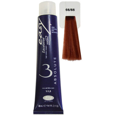 Lisap Easy Absolute 3 Ammonia Free Permanent Color - 66/66 - 2.11 oz. - 50 mL. This hair-friendly colour has many wonderful properties that puts it a step above all the rest when it comes to high quality professional colouring. Easy absolute 3 is ammonia free, PPD free, resorcinol free and is specially designed with fragile and sensitive hair in mind. Every tube of Easy Absolute isenriched with argan oil which keeps hair nourished, healthy and looking its best.