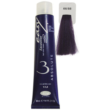 Lisap Easy Absolute 3 Ammonia Free Permanent Color - 66/88 - 2.11 oz. - 50 mL. This hair-friendly colour has many wonderful properties that puts it a step above all the rest when it comes to high quality professional colouring. Easy absolute 3 is ammonia free, PPD free, resorcinol free and is specially designed with fragile and sensitive hair in mind. Every tube of Easy Absolute isenriched with argan oil which keeps hair nourished, healthy and looking its best.