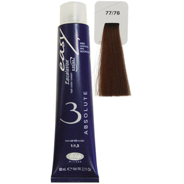 Lisap Easy Absolute 3 Ammonia Free Permanent Color - 77/76 - 2.11 oz. - 50 mL. This hair-friendly colour has many wonderful properties that puts it a step above all the rest when it comes to high quality professional colouring. Easy absolute 3 is ammonia free, PPD free, resorcinol free and is specially designed with fragile and sensitive hair in mind. Every tube of Easy Absolute isenriched with argan oil which keeps hair nourished, healthy and looking its best.