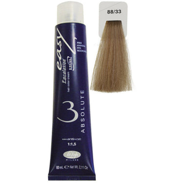 Lisap Easy Absolute 3 Ammonia Free Permanent Color - 88/33 - 2.11 oz. - 50 mL. This hair-friendly colour has many wonderful properties that puts it a step above all the rest when it comes to high quality professional colouring. Easy absolute 3 is ammonia free, PPD free, resorcinol free and is specially designed with fragile and sensitive hair in mind. Every tube of Easy Absolute isenriched with argan oil which keeps hair nourished, healthy and looking its best.