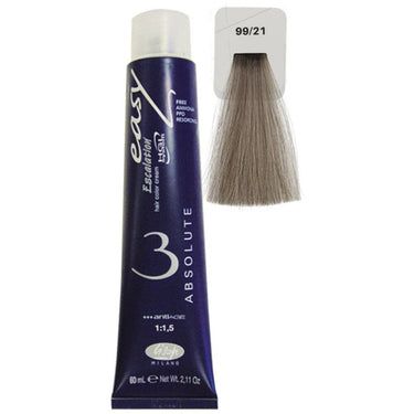 Lisap Easy Absolute 3 Ammonia Free Permanent Color - 99/21 - 2.11 oz. - 50 mL. This hair-friendly colour has many wonderful properties that puts it a step above all the rest when it comes to high quality professional colouring. Easy absolute 3 is ammonia free, PPD free, resorcinol free and is specially designed with fragile and sensitive hair in mind. Every tube of Easy Absolute isenriched with argan oil which keeps hair nourished, healthy and looking its best.