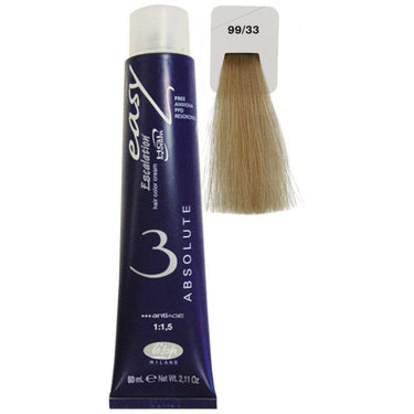 Lisap Easy Absolute 3 Ammonia Free Permanent Color - 99/33 - 2.11 oz. - 50 mL. This hair-friendly colour has many wonderful properties that puts it a step above all the rest when it comes to high quality professional colouring. Easy absolute 3 is ammonia free, PPD free, resorcinol free and is specially designed with fragile and sensitive hair in mind. Every tube of Easy Absolute isenriched with argan oil which keeps hair nourished, healthy and looking its best.