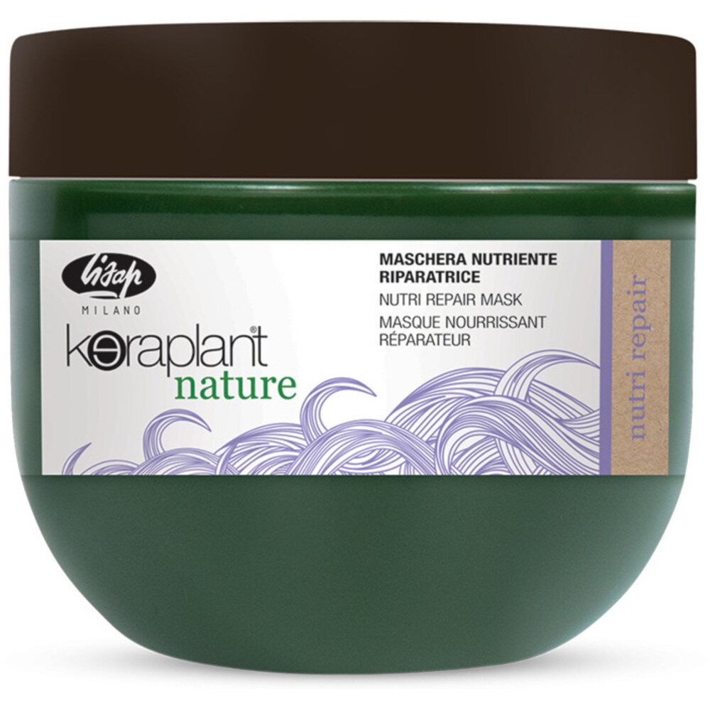 Lisap Keraplant Nutri-Repair Mask / 16.9 oz. - 500 mL. Keraplant Nature Nutri-Repair Mask is a treatment with outstanding moisturising, nourishing and repairing properties. It is enriched with quaternised keratin and Hydrabond, a highly hydrating active complex that closesup damaged cuticles. It nourishes the hair fibre deep down and reinforces it. The hair is left stronger, hydrated, silky and healthy. Formula completely free from PARABENS/COLORANTS. With certified natural fragrances. Dermatologically Tested. Professional Use.