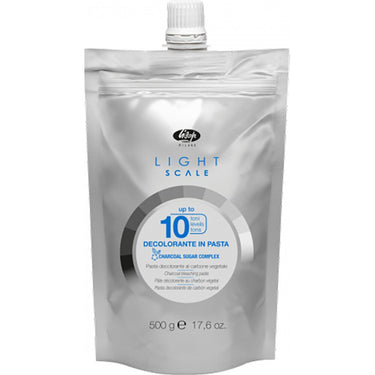 Lisap Light Scale Up to 10 Charcoal Bleach / 17.6 oz. - 500 grams. Light Scale Charcoal Bleach with lightening power up to 10 levels creates theperfect blonde and leaves hair healthy and hydrated. Charcoal Sugar Complex, a dual-action complex of sugars and charcoal. The sugars work on the surface, in the cuticle, protecting and hydrating the hair throughout the lightening process. The charcoal not only gives the bleaching paste its characteristic black color, it also neutralises unwanted yellow/orange undertones whilst purifying the hair.