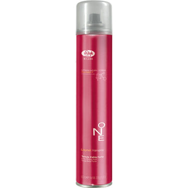 Lisap Lisynet One Extra Strong Hold Hairspray / 11.9 oz. - 500 mL. High technology, professional hair spray. Ideal for creating volume, defining movement. Ideal for all hairstyling technques.