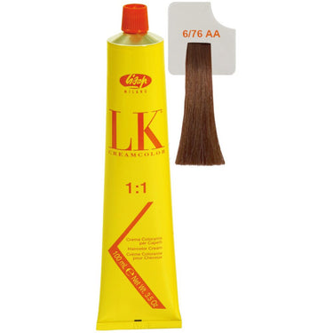 Lisap LK Anti-Age Permanent Color - 6/76 - 3.5 oz. - 100 mL. Advanced formula has a remarkable low concentration of 1% ammonia, also with innovative micro-molecular colors, Lisap LK Color gently and evenly penetrate the hair resulting in a perfect color. Provides 100% gray hair coverage.