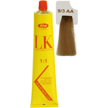 Lisap LK Anti-Age Permanent Color - 9/3 - 3.5 oz. - 100 mL. Advanced formula has a remarkable low concentration of 1% ammonia, also with innovative micro-molecular colors, Lisap LK Color gently and evenly penetrate the hair resulting in a perfect color. Provides 100% gray hair coverage.