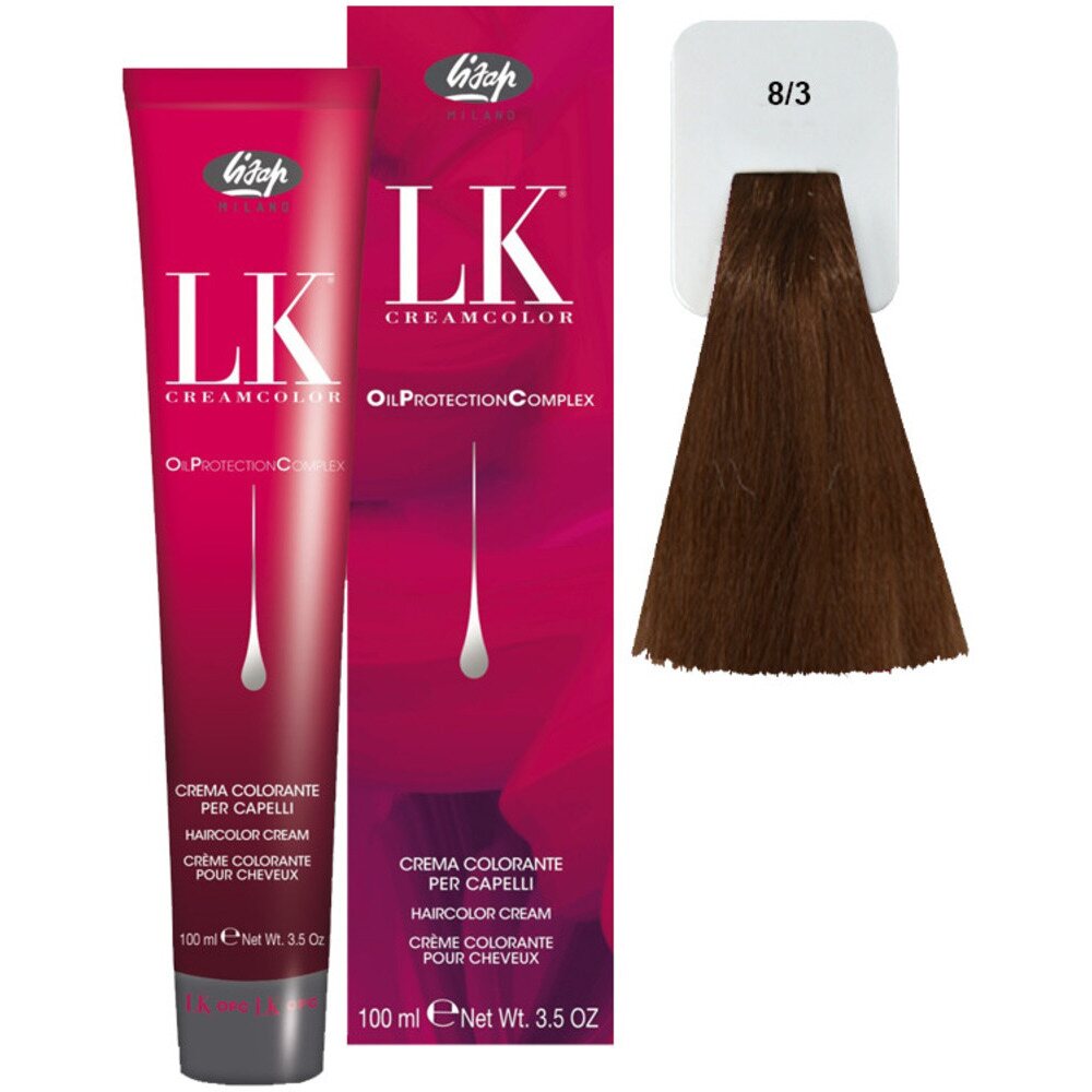 Lisap LK OPC Permanent Color - 8/3 - 3.5 oz. - 100 mL. Lisap LK OPC is a professional hair dye, enriched with certified argan and passion fruit oil. Guarantees 100% gray hair coverage. Very low ammonia content (0.4%). Has a pleasant aroma. Offers long-lasting and bright colors. 40% more lasting than other professional dyes.