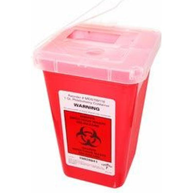Lock-up Sharps Container Red 1 Quart. Sharp Safe Container The locking top flap permanently closes to protect against accidental exposure as well as unauthorized removal. The Sharp Safe Container has a large opening to accommodate up to 60 cc syringes. The phlebotomy needle remover minimizes the danger of removing the needle from the syringe. This product is easy to assemble and appropriately labeled, and the LOCK-UP containers meet all EPA and OSHA standards.