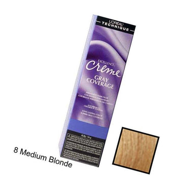 L'Oreal Excellence Creme Permanent Haircolor - 8 Medium Blonde / 1.74oz. L'Oreal Excellence Creme Permanent Hair color is enriched with special polymers, the conditioning agents are especially gentle to fragile, fine, dry, permanent waved and chemically relaxed hair. Make hair easy to detangle, manageable and silky to the touch. L'Oreal Excellence Creme Permanent Hair color has a unique foaming action that makes application a breeze.