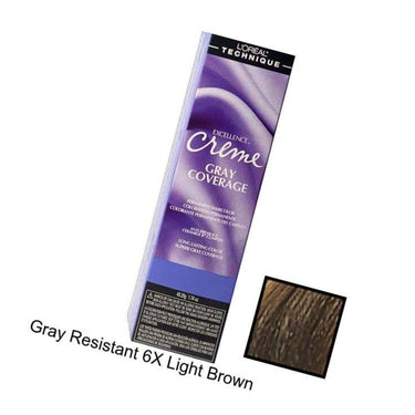 L'Oreal Excellence Creme Permanent Haircolor - Gray Resistant 6X Light Brown / 1.74oz. L'Oreal Excellence Creme Permanent Hair color is enriched with special polymers, the conditioning agents are especially gentle to fragile, fine, dry, permanent waved and chemically relaxed hair. Make hair easy to detangle, manageable and silky to the touch. L'Oreal Excellence Creme Permanent Hair color has a unique foaming action that makes application a breeze.