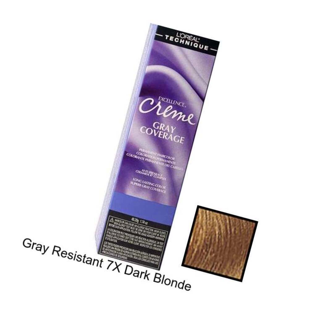 L'Oreal Excellence Creme Permanent Haircolor - Gray Resistant 7X Dark Blonde / 1.74oz. L'Oreal Excellence Creme Permanent Hair color is enriched with special polymers, the conditioning agents are especially gentle to fragile, fine, dry, permanent waved and chemically relaxed hair. Make hair easy to detangle, manageable and silky to the touch. L'Oreal Excellence Creme Permanent Hair color has a unique foaming action that makes application a breeze.