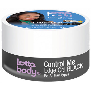 Lottabody Control Me Edge Gel Black / 2.25 oz. Enriched with Coconut and Shea Oils, this formula deeply penetrates and hydrates hair, leaving hair soft and nourished with a brilliant shine. This formula controls, holds and smoothes edges while covering grays and minimizing the appearance of thinning edges.