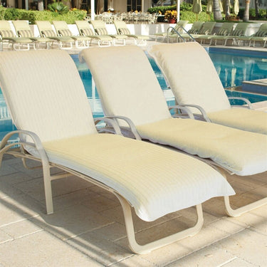 Lounge Chair Cover - Terry With Elastic Hood / Ecru. A plush lounge chair cover makes your poolside relaxation so much more enjoyable. The elasticized pull-over top means you can forget about falling down towels. Universal fit insures that you can use the same chair cover just about anywhere.