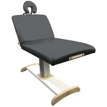 Majestic Lift Back Electric Massage Table / 33" Width by Custom Craftworks. Add the comfort and convenience of a manual lift back with our Majestic Lift Back Electric Massage Table. Smoothly transition clients from supine to seated while they relax on this table. Sleek and modern with its column design, the Majestic Lift Back also offers generous leg and knee room, 12" height range adjustment, and ease of operation with just a tap of the toe. The Lift Back model includes a dual action face rest with crescent pillow, single foot pedal and side arm holes for optional swivel side arms.