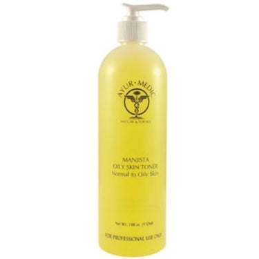 The Manjista Oily Skin Toner / 16 oz. Back Bar by Ayur-Medic Skincare is a powerful, professional-grade toner specifically designed to refine and balance normal to oily skin. This toner completes the cleansing process, removing any remaining impurities while maximizing the penetration of serums and creams. Formulated with fruit acids, it helps to diminish dead skin buildup, leaving the skin smooth, refreshed, and perfectly prepared for subsequent skincare treatments.