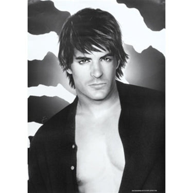 Man with Zebra Background Poster. 19" x 27" Salon Poster. Dramatic in black and white.
