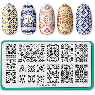 Maniology Talavera Nail Stamping Plate. Bring the rich, vibrant beauty of traditional Mexican ceramic art to your nails with the Maniology Talavera Nail Stamping Plate. Inspired by the intricate details and bold designs found in Talavera pottery, this stamping plate features a stunning array of floral motifs, ornate scrolls, and geometric patterns. Each design captures the spirit and artistry of Mexico, allowing you to transform your nails into a canvas for unique, culturally inspired nail art. Whether you're looking to make a bold statement or add a touch of elegance to your manicure, this plate gives you the tools to create dynamic and colorful looks that stand out.