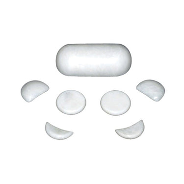 Marble Facial Starter Set / 7 Pieces. Made from high quality, hand-carved, natural marble. This set is great for introducing cold stone therapy into your existing stone massage and facial sessions. The contrast between hot and cold therapy can produce fantastic results. 7 piece set. Set includes: 2 Crescent Eye Stones - 1.825" L x 0.75" W x 0.375" T 2 Small Cheek Stones - 1.875" L x 1.5" W x 0.25" T 2 Small Face Stones - 2.0" L x 2.0" W x 0.375" T 1 Neck/Pillow Stone - 5.25" L x 2.5" W x 1.5" T Related Items