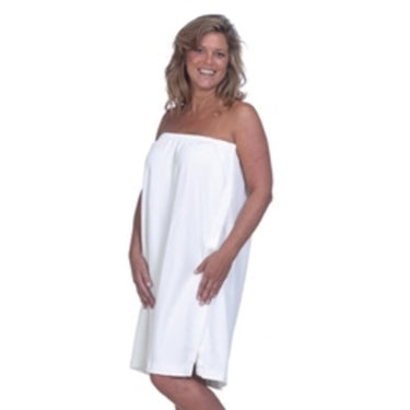 Marina Spa Natural Waffle Weave Spa Wrap / 33"L. Marina Spa Natural Waffle Weave Spa Wrap features soft knit fabric with tiny waffle pockets. Elastic top with velcro closure. One size fits most. 33"L.