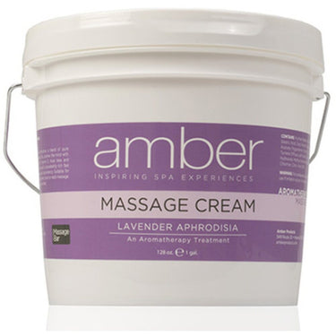 Amber Massage Cream - Lavender Aphrodisia. Transform every massage session into a serene journey with Amber’s Massage Cream in Lavender Aphrodisia. Crafted for spa and salon professionals, this 128 oz. powerhouse blends the finest aromatherapy ingredients to relax, calm, and restore both the body and mind. With a rich texture that effortlessly transitions from cream to oil, this massage cream delivers unparalleled glide, making it a trusted choice for deep tissue work and holistic treatments.
