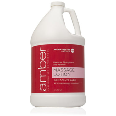 Amber Geranium Sage Massage Lotion - 128 oz. Transform every massage into a rejuvenating experience with the Amber Geranium Sage Massage Lotion. Specially crafted to meet the needs of spa and salon professionals, this premium massage lotion blends the nourishing properties of natural oils with an invigorating, uplifting aroma to provide unparalleled benefits for your clients and their skin.