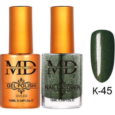 MD Nail Duo 2-in-1 Gel Polish 0.54 oz. + Nail Lacquer 0.54 oz. #K045 - The Perfect Pair for Salon-Quality Nails. Transform your nail care routine with the MD Nail Duo 2-in-1 Gel Polish + Nail Lacquer. This innovative product is designed to meet the highest standards of nail professionals while being accessible to everyone. Combining the durability and longevity of gel polish with the vibrant and easy-to-apply qualities of nail lacquer, this duo offers the best of both worlds in a single, convenient package.