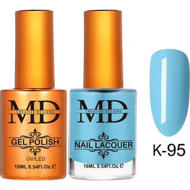 MD Nail Duo 2-in-1 Gel Polish 0.54 oz. + Nail Lacquer 0.54 oz. #K095 - The Perfect Pair for Salon-Quality Nails. Transform your nail care routine with the MD Nail Duo 2-in-1 Gel Polish + Nail Lacquer. This innovative product is designed to meet the highest standards of nail professionals while being accessible to everyone. Combining the durability and longevity of gel polish with the vibrant and easy-to-apply qualities of nail lacquer, this duo offers the best of both worlds in a single, convenient package.